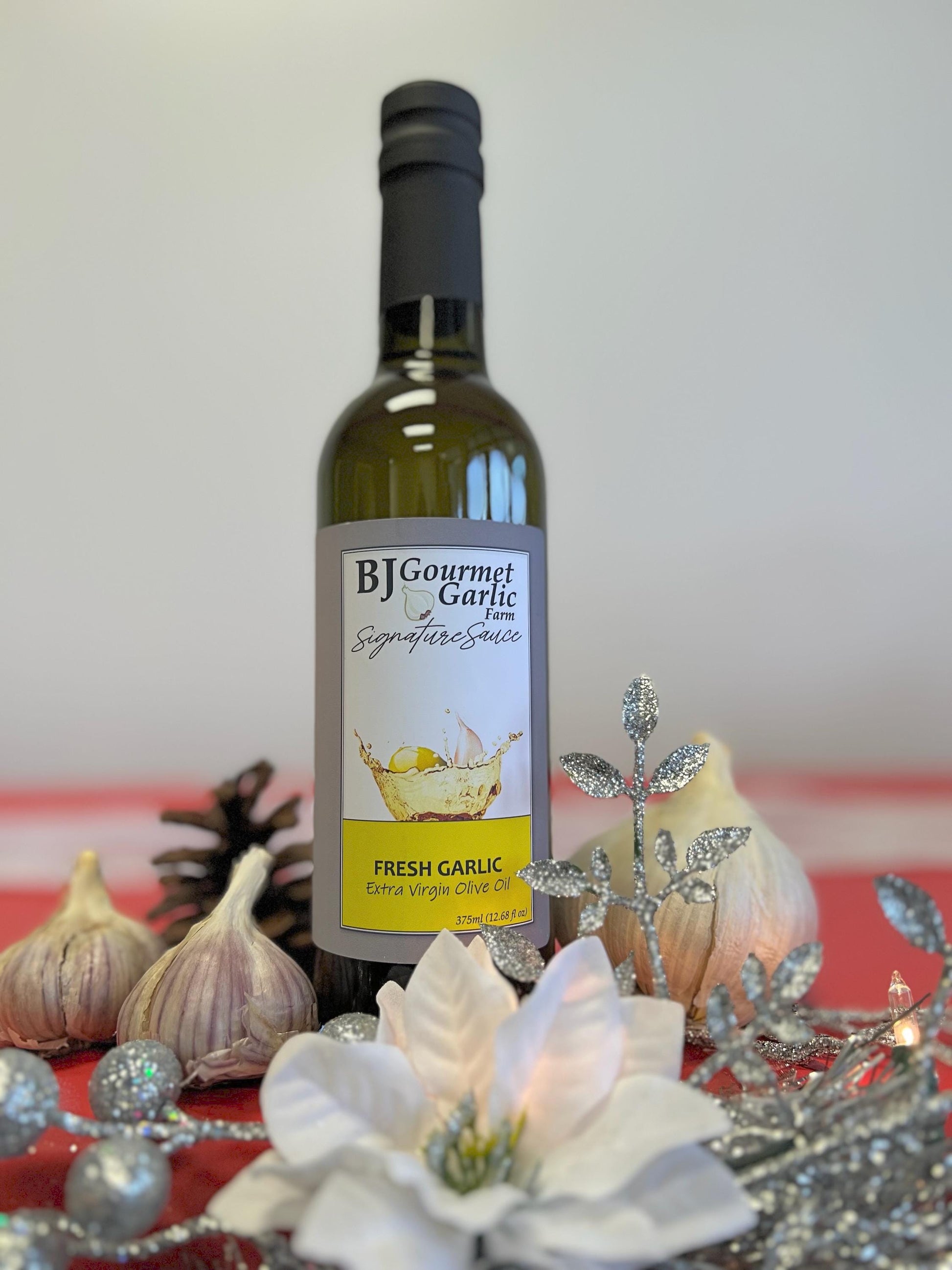 All Natural 100% Pure Fresh Garlic Extra Virgin Olive Oil. Excellent garlic taste, no need to add any ofther flavors to this robust garlic tasting olive oil!! Simply the best you will taste. As soon as you pop the cork you can smell the fresh garlic!! Full of flavor.