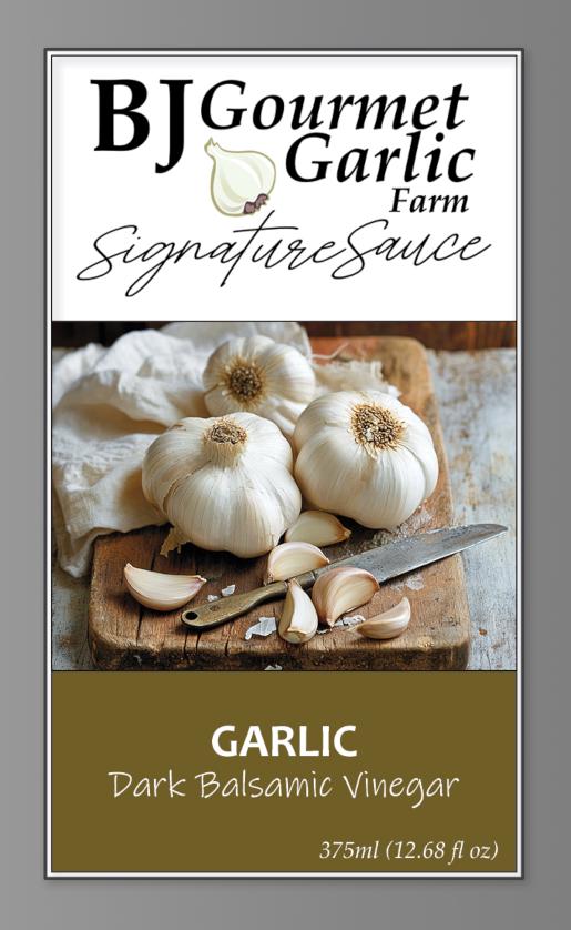 Description: Pungent garlic in a thick dark sweet balsamic vinegar, this is a great option in a vinaigrette or as a drizzle on your Caprese salad. Well as a marinade.